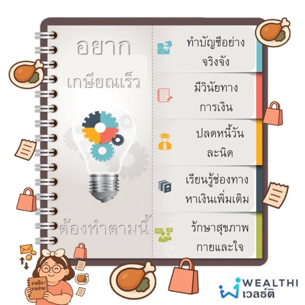 ค่อยๆ เพิ่มรายได้เสริมที่มั่นคง เช่น ขายความรู้ ขายบริการ - รักษาสุขภาพกายและใจ
